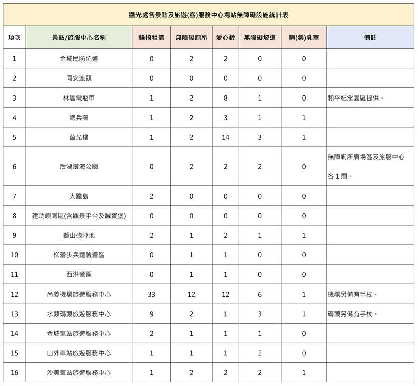 為提供友善旅遊環境,讓每位旅客享受舒適自在的金門之旅,金門許多景點、旅遊服務中心皆有規劃無障礙旅遊空間及無障礙設備租借服務,歡迎有需要的旅客免費使用!