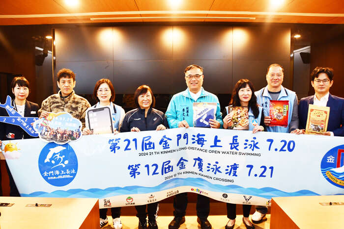 今年夏天的金門海上長泳暨金廈泳渡-金門場記者會於昨天上午十時,假縣府新聞發佈室舉行,由副縣長李文良主持,金門體育會理事長唐麗輝、教育處長孫麗琪與副處長洪蘋萱、體育場長王志仁出席與會,宣布金廈泳渡即日起報名至五月三日止、金門海上長泳報名至六月十三日止,歡迎愛好「泳士」踴躍報名參與盛會。