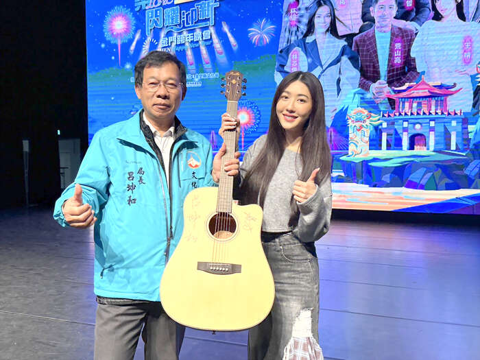 「樂福金門閃耀迎新」2025金門跨年晚會,表演明星卡司正式揭曉。金門縣文化局呂坤和局長11日邀請金門在地出身的演藝圈才女王晴回金共同揭曉2025跨年晚會表演卡司,包含13位知名藝人,以及113年金門傑出演藝團隊「金門棠風舞蹈團」聯袂出席表演之外,並於金門縣演藝廳進行在地表演團隊徵選活動的決選,從中再選出三組參與金門跨年晚會的演出,精彩可期。經過昨日評選後,最後由KIM SQUAD(有緣作伙)、Candy一顆糖、浯洲揚琴樂團等團體入選跨年晚會演出。