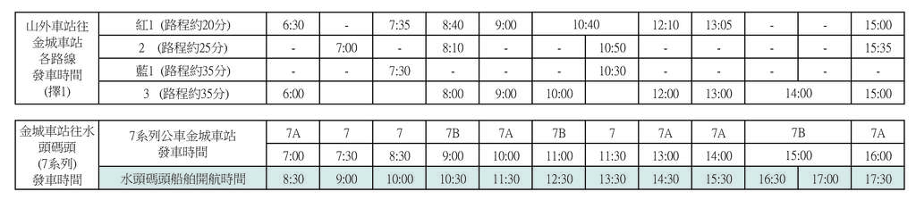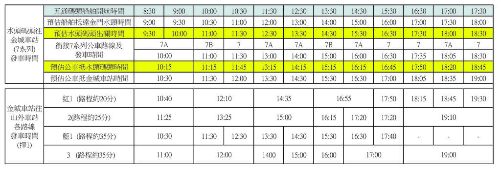 為便於搭乘小三通的自由行旅客,自水頭碼頭往返山外市區,公告以下公車乘坐資訊: