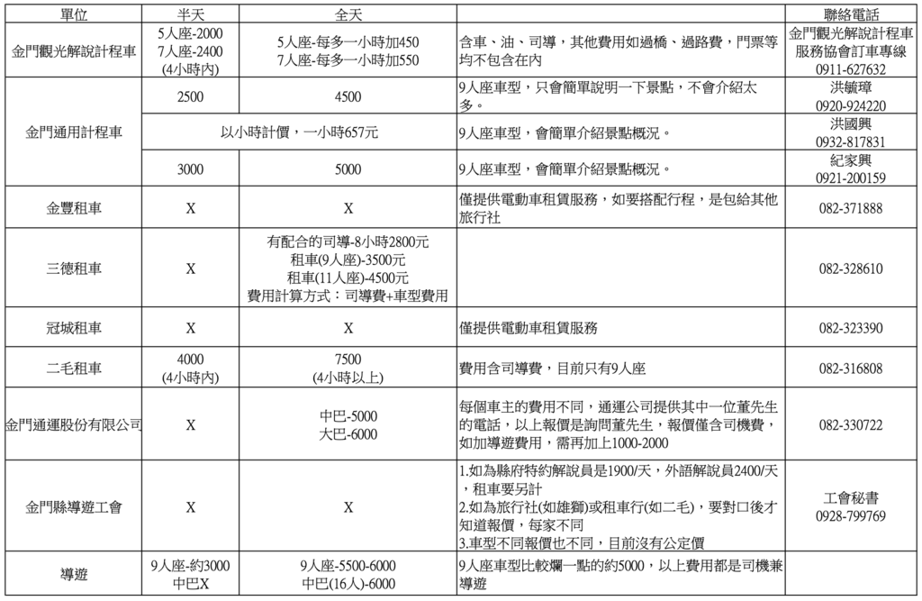 更多金門旅遊交通方式,可至「島內交通」單元瀏覽。