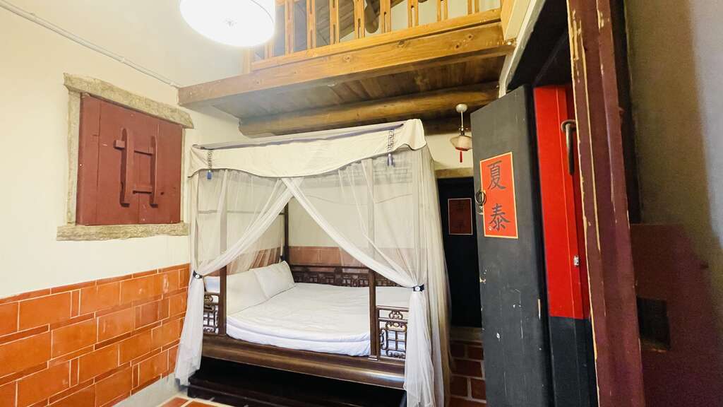 古厝內部裝飾精美、舒適,使用古式紅眠床,可讓您體驗古早人睡眠的韻味。