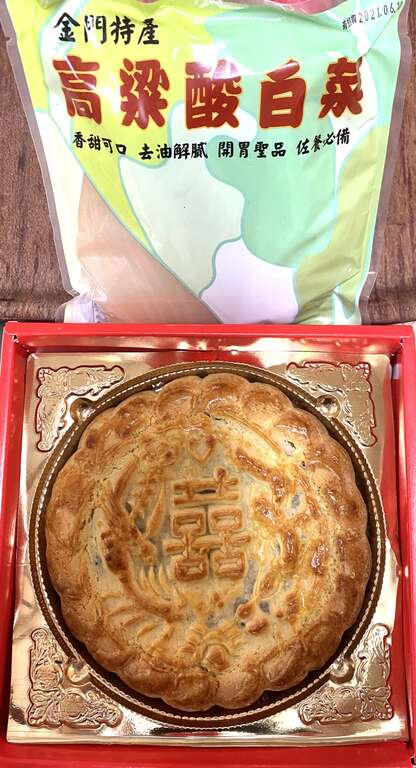 「高粱布朗尼蛋糕」巧妙結合金門的農業特產,採用進口巧克力和金門高粱酒,再加上奶油製作而成,蛋糕表層點綴著道地的高粱粒,口感扎實綿密,濃郁的巧克力香氣層次分明,令人難以忘懷。而「高粱酸白菜鹹蛋糕」則是本店獨創的絕妙滋味,以金門特產的高粱酒糟酸白菜為主要配料,搭配燻香的培根,創造出甜鹹交織、綿密爽口的獨特口感,讓人一口接一口!
