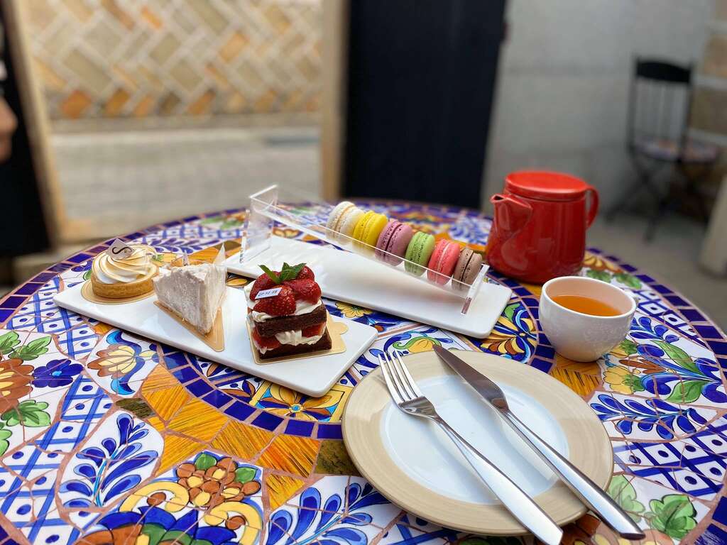 核桃布朗尼、伯爵茶牛奶糖慕斯佐台灣桔丁、伯爵茶酷利、伯爵茶香提,以及最上層法式手工千層。口味相互搭配,猶如家庭中各個成員互相扶持一般!