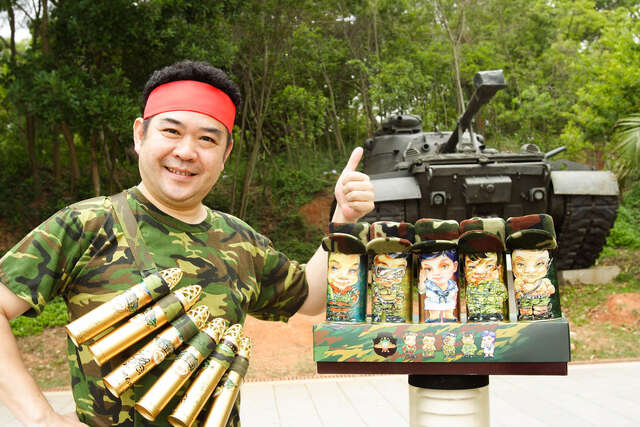 「子彈餅」陳金福號發揮創意,研發戰地文化的子彈餅,微甜焦香的煎餅口感,越嚼越香,層次豐富帶出香濃酥脆口感,目前有高粱酒、奶香、巧克力口味,精心設計的子彈包裝,是深受觀光客喜愛的產品!