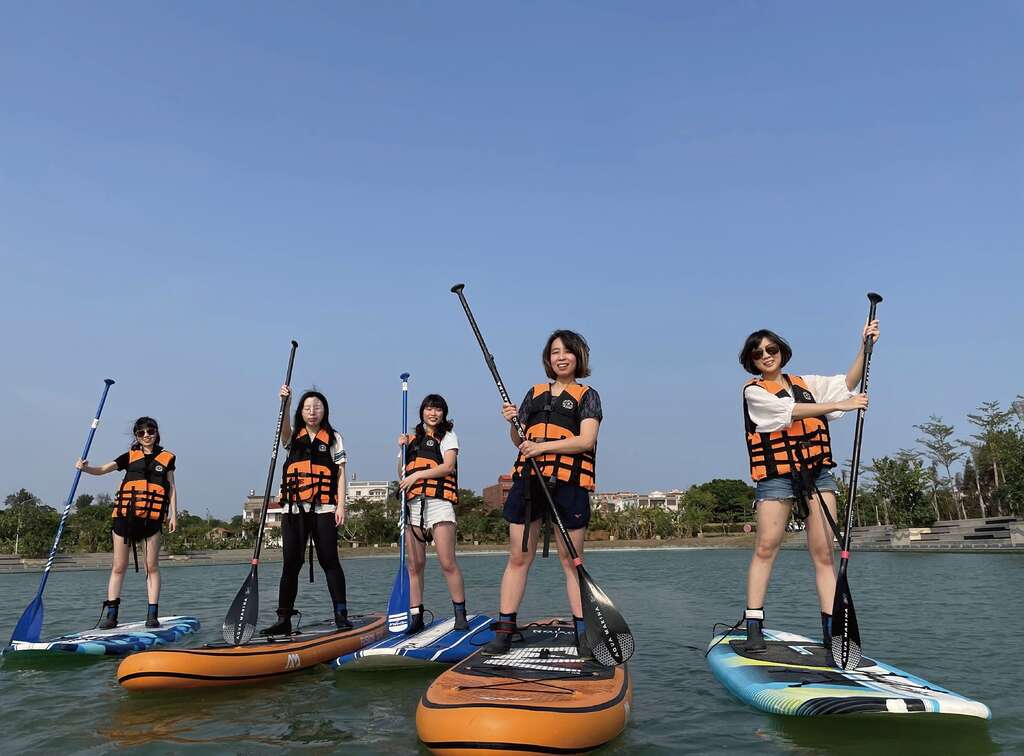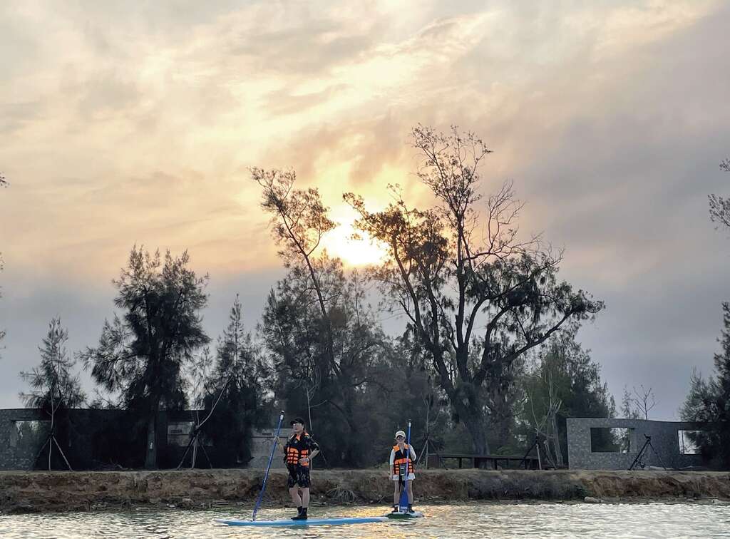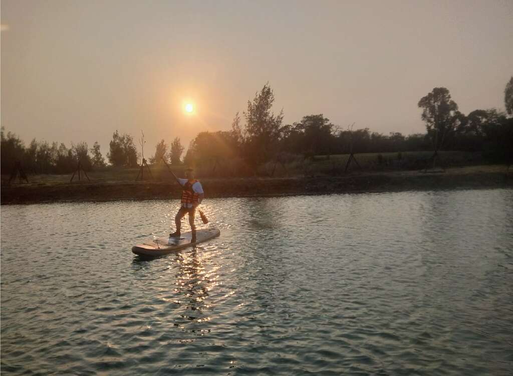 來亨式暢遊體驗立槳,學會站立是很基本的喔,體驗一定要玩的深入,玩樂之餘不忘提升技能,也能玩一些很流行的SUP平衡動作,因為地理位置的關係烈嶼位在金門很西邊的位置,從太陽高掛的時候一路玩到太陽西沉,玩累了就在板上坐著欣賞晚霞,吹風慵懶著,還可以躺著睡一下,然後迎接著晚上的狂歡。