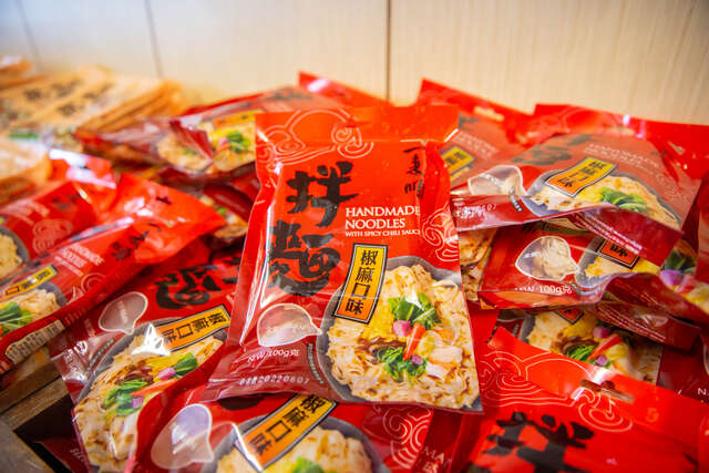 「拌麵系列」麵體Q彈,手工製作。滾水煮30秒後加入特製醬料,可依照個人口味調配後,即可食用,外出露營必備首選。