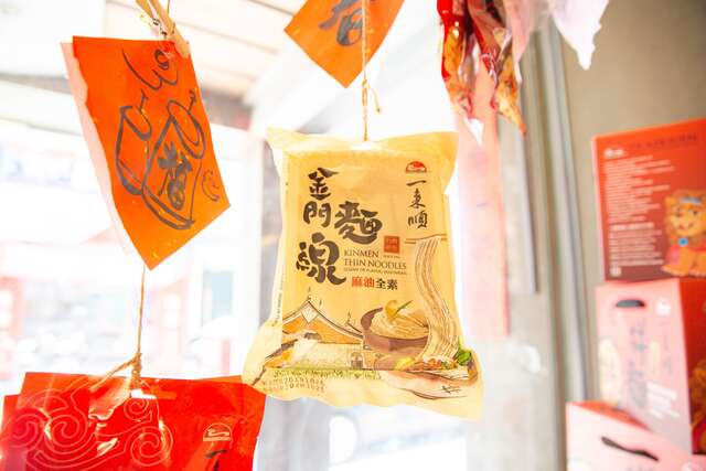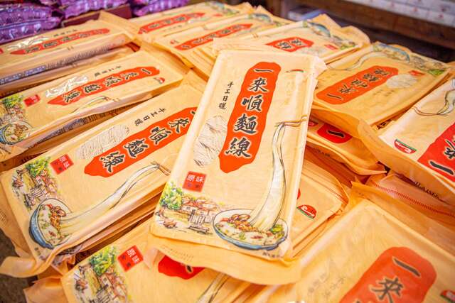 「一來順高梁麵線」以傳統手工製麵技術,引用金門純淨水質,配合在地獨特天候,經由風、陽光自然曝曬乾燥而成,食用送禮兩相宜。