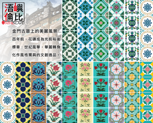 為延續這份美學遺產,浯嶼倫比團隊親自走入金門街巷,拜訪一戶戶老宅、洋樓,拍攝、紀錄、考據各式花磚紋樣,從資料蒐集到圖樣繪製、數位轉化,全由團隊親手完成。