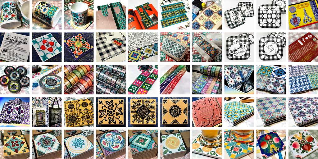 他們以設計為媒,落實「文化生活化,設計日常化」的精神,把原本只能遠觀的磚面圖騰轉化為日常可用的生活用品,如杯墊、馬克杯、紙膠帶、書套、隨身鏡、髮帶、髮圈、明信片...等,讓花磚從牆面走進你我的日常,變成帶得走的文化符號,成為生活中溫柔而鮮明的存在。