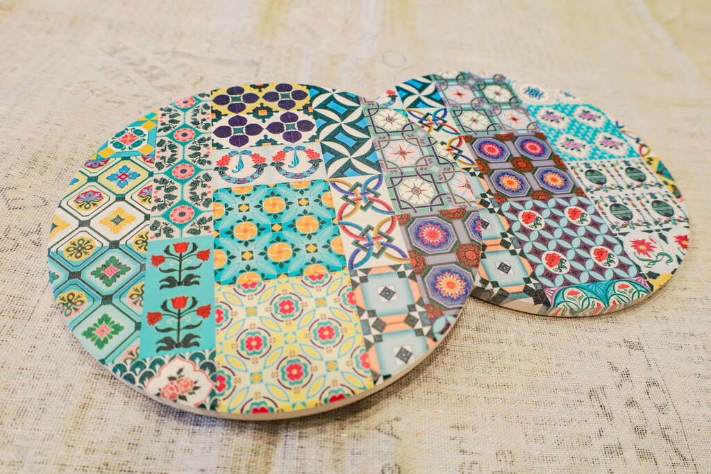 杯墊 / 鍋墊系列|除了最常見的杯墊,還推出了鍋墊,以不同花色大小排版錯落,看起來活潑充滿設計感。