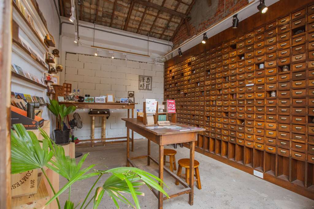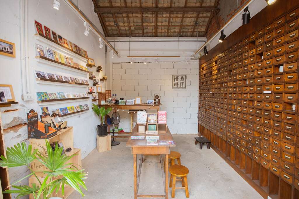 浯島。時貳位於充滿復古懷舊氛圍的陽翟老街上,外觀是中藥店,實則是一間未來明信片店。