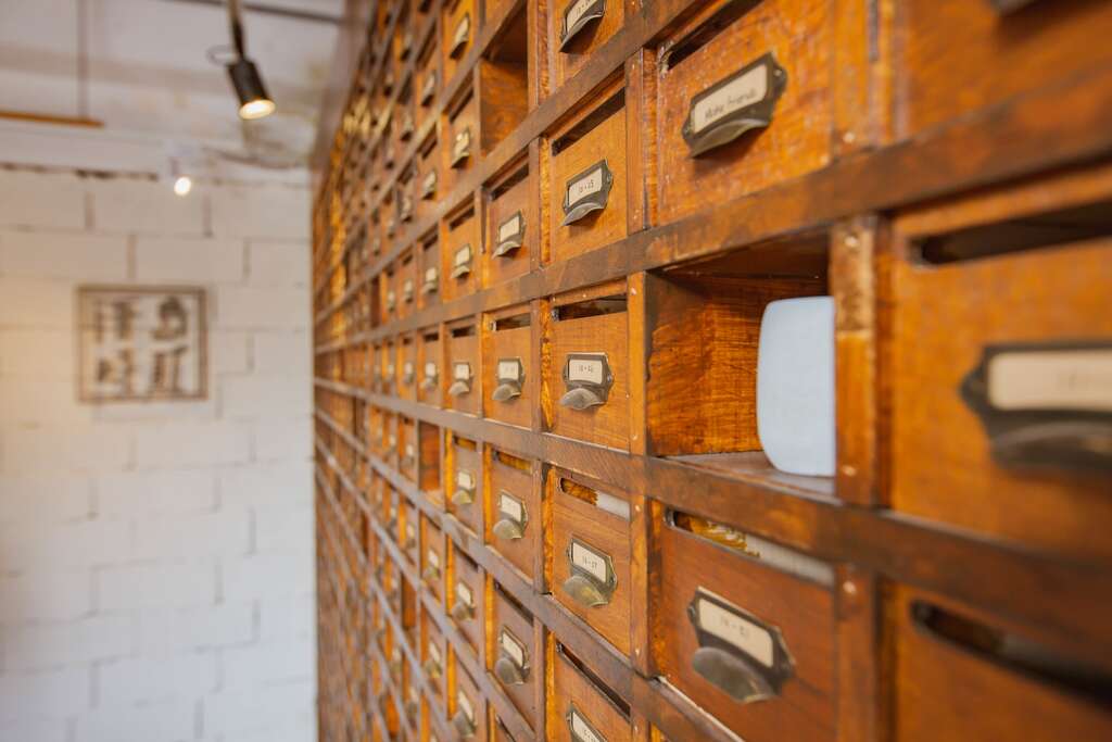 中藥材櫃子,上面註記著365天,找一天值得紀念的日子,或是就是來浯島的這天,留言給未來的自己吧!