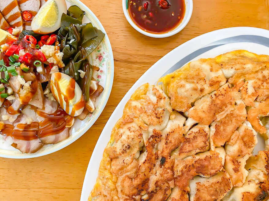 「鍋貼煎餃」妙香的經典招牌,每桌都會一定會出現一盤鍋貼,搭配店家特調醬汁,鹹香中帶點微辣,是相當舒服的辣度,底部煎至微焦,加入些許蛋液增添香氣,口感偏軟,是多在地人的口袋名單。