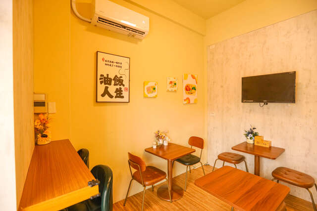 店內的木質裝潢充滿溫馨質樸,讓人聯想到老闆早年用來裝油飯的木桶,一踏進店裡就能感受到熟悉的懷舊氣息。儘管空間不大,座位安排得恰到好處,讓顧客不感擁擠,享受一頓舒適的用餐時光。