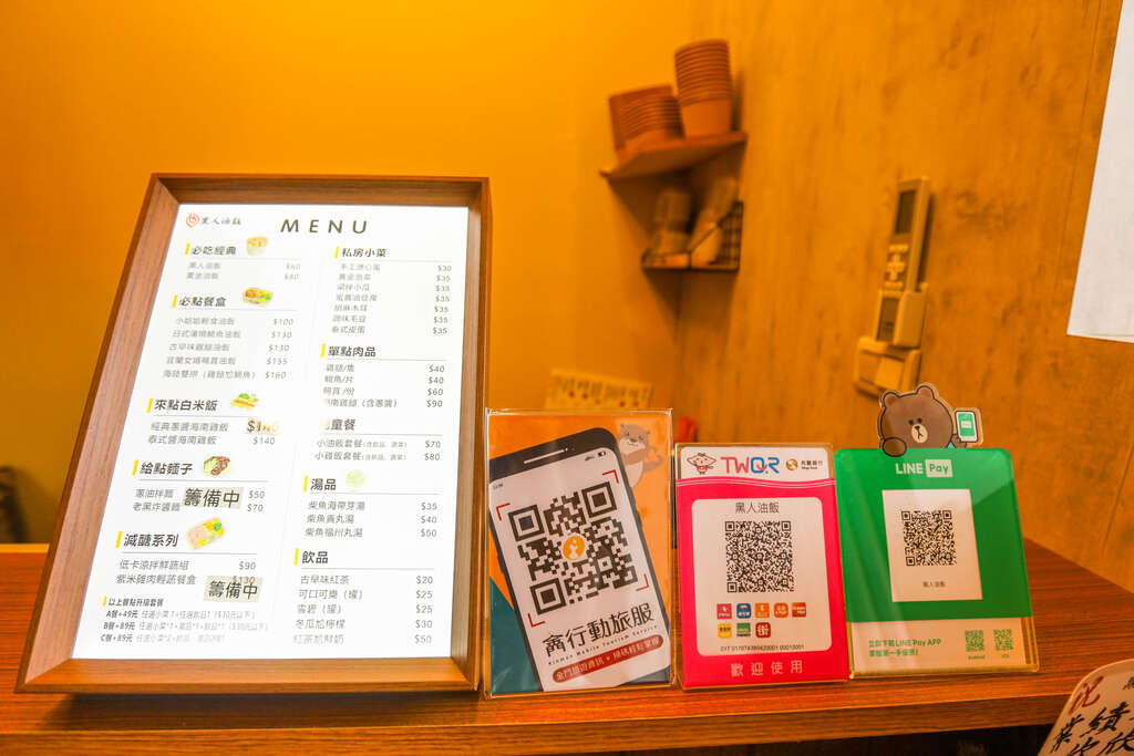 店面也提供電子支付,讓顧客付款更便利!如果擔心到了現場卻錯過限量美味,「黑人手作油飯」貼心提供電話預訂與外帶服務,還能通過外送平台熊貓下單,不過外送價格與現場價格略有不同,請記得事先確認!