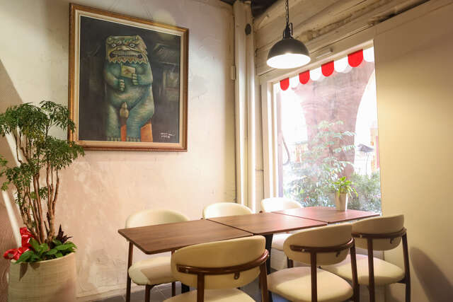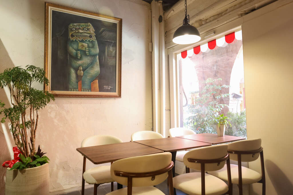 店主對金門文化的深厚情感,使得每個角落都洋溢著歷史與情懷。走進這間咖啡廳,彷彿置身於一座博物館。環繞著風獅爺的設計,搭配寬敞的空間與精緻的飾品,完美融入了金門獨特的文化氛圍。
