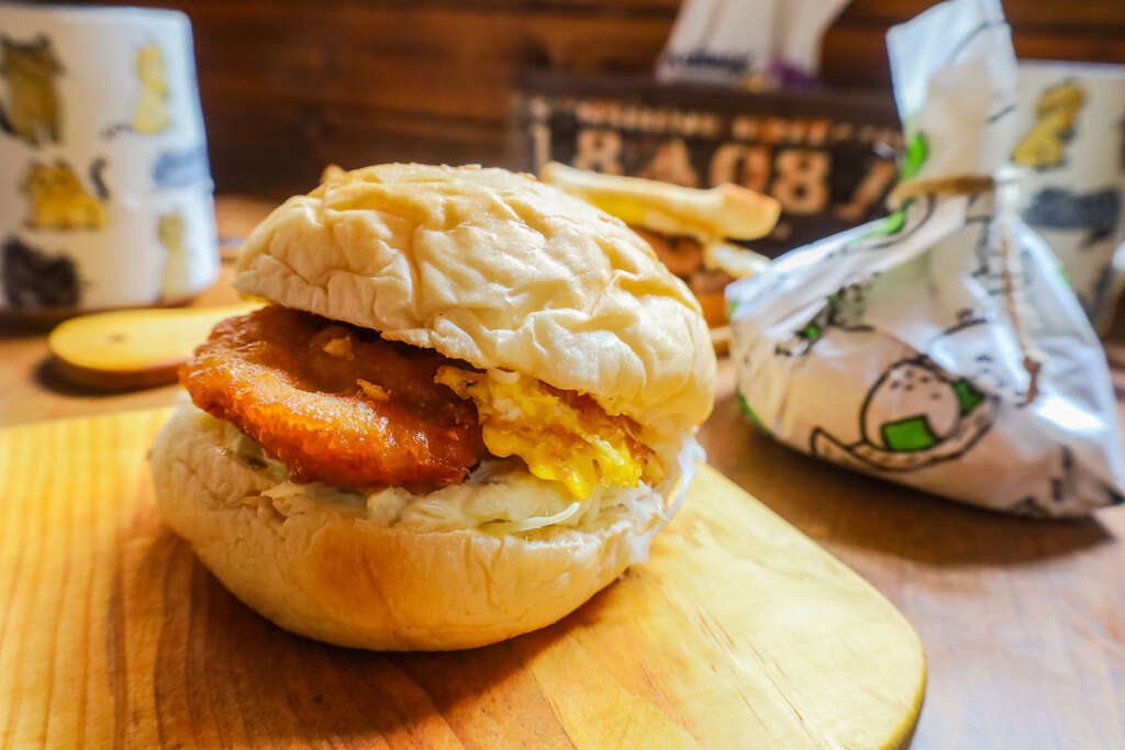 除了吐司、飯糰系列,店中還有漢堡的選擇,特調塔醬配上招牌唐揚炸雞,肉質鮮嫩、口感層次分明,絕對物超所值。
