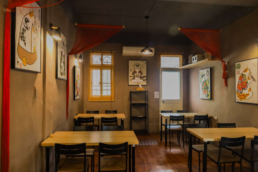 店面風格如同日本巷弄裡的食堂,一樓為挑高吧檯式座位,可近距離欣賞料理現作,二樓則設有獨立分桌區,適合三五好友聚餐。牆面上除了帶有現代幽默與流行元素的和風插畫,還貼著三胞胎從童年到創業的照片與故事,紀錄著她們將家庭味道化為夢想的歷程,成為店裡最真實、最動人的風景。